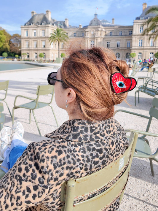 Hand-painted Lucky Eye Heart Hair Claw Clip