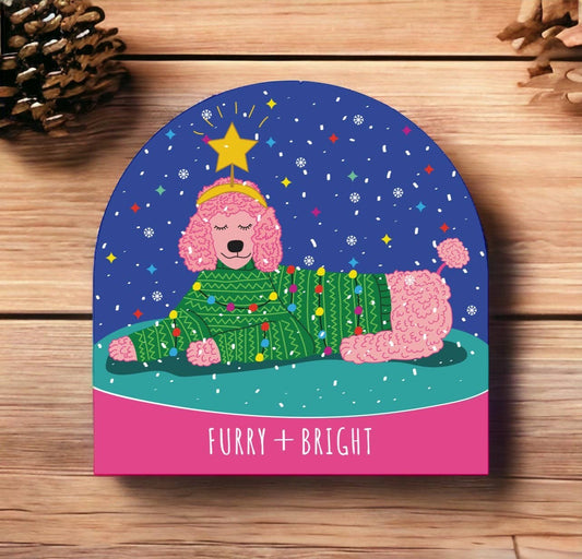 Holidays Card - Pink Poodle: Furry and Bright