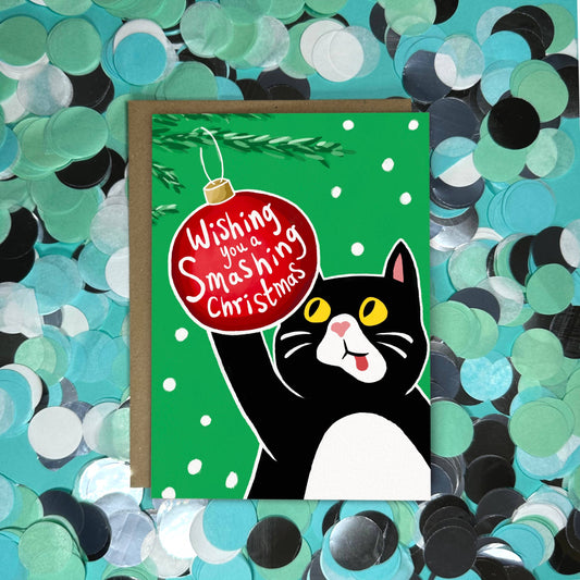 Funny Christmas Card - Smashing Christmas Cat and Bauble