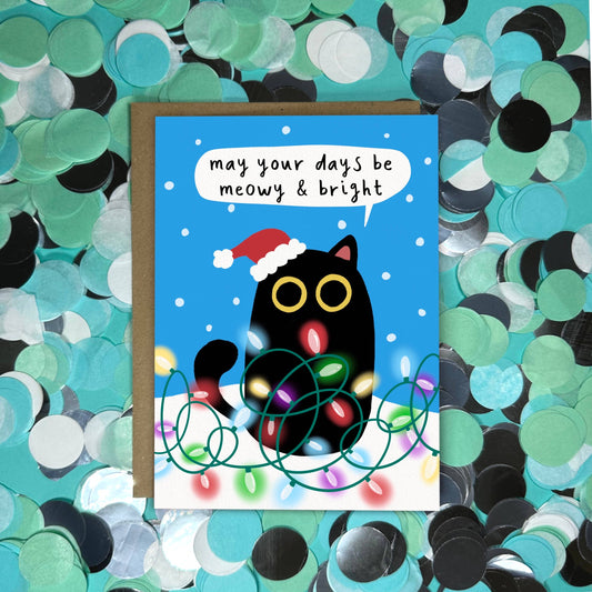 Funny Christmas Card - Meowy and Bright Cats and Tree Lights