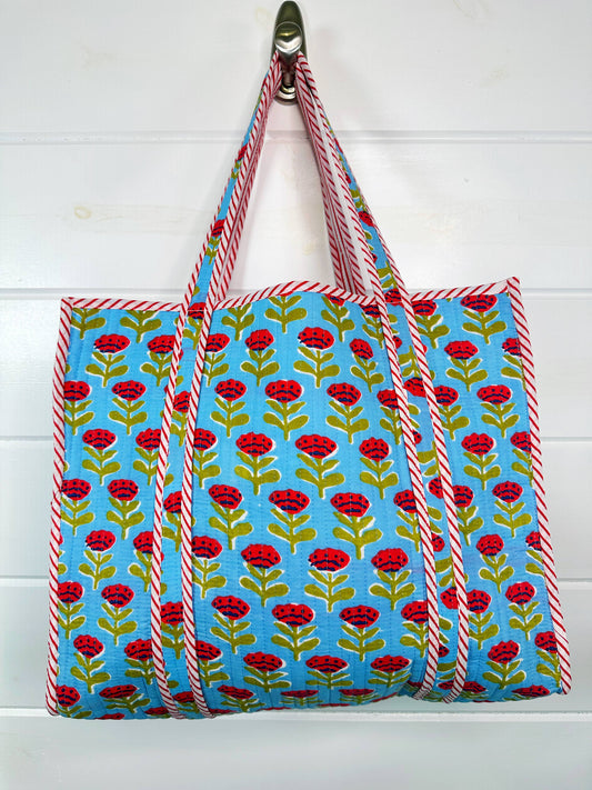 Quilted Tote Bag | Blue Floral Bag | Large Shopping Tote Bag