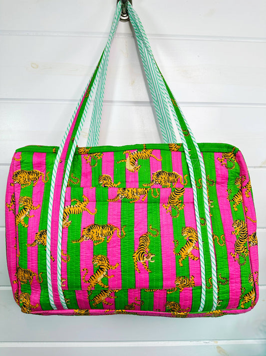 Pink & Green Handmade Quilted Tiger Print Duffle