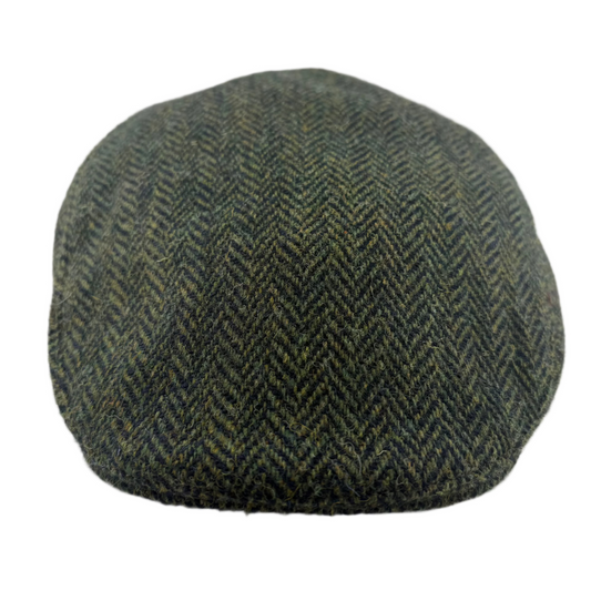 The Donegal Touring Cap Tweed - Green and Black Herringbone by Hanna Hats of Donegal