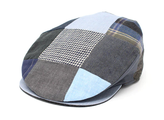 The Linen Vintage Patchwork Cap in Blue/Gray by Hanna Hats of Donegal
