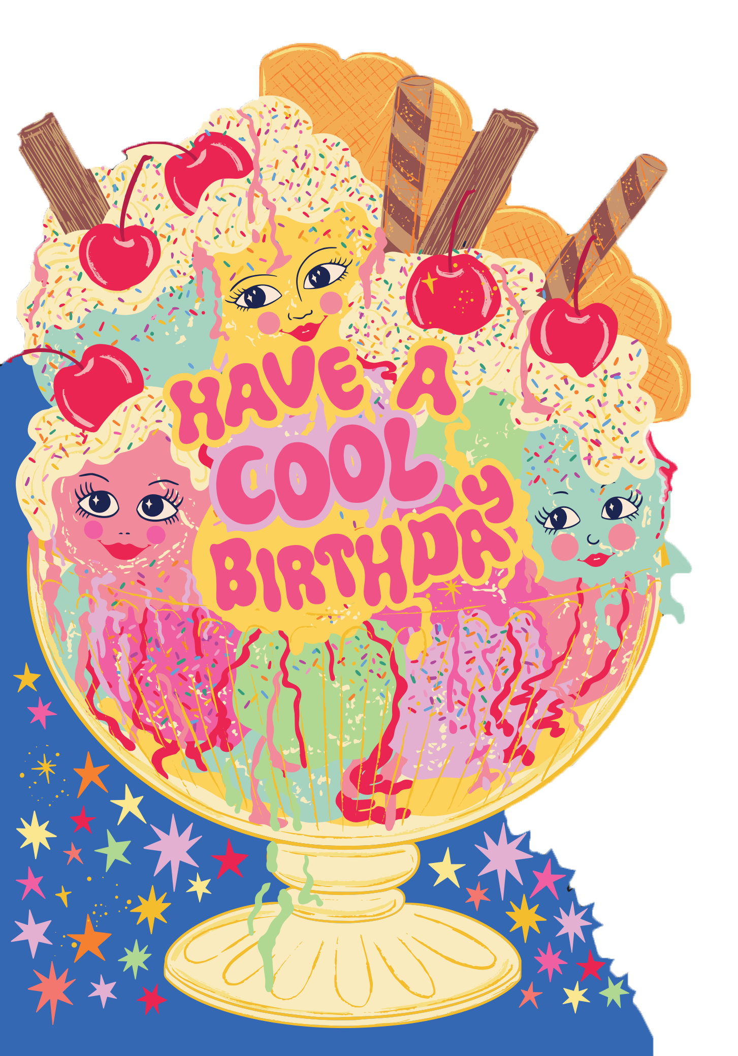“Cool Birthday” – Funky Ice Cream Cut Out Birthday Card from Lost Plots Sweet, fun, and totally cool! This design is a vibrant die-cut birthday card from the Lost Plots collection, created in collaboration with artist Lisa Robson. Featuring a funky, colorful ice cream sundae topped with stars and playful details, this card is the perfect treat for someone special.