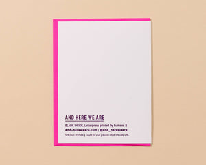 • Letterpress printed with vibrant, neon inks • Folded card measures A2 (4.25″ x 5.5″) • Comes with a coordinating envelope. • Hand printed in Columbus, OH, USA. • Words and illustrations by Meghan Hopkins Sokorai.