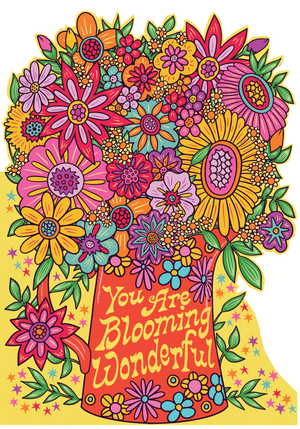 Featuring a funky, colorful vase overflowing with bold, psychedelic flowers, this card radiates positivity and joy. The uplifting caption 'You Are Blooming Wonderful' makes it perfect for any occasion - whether it's a birthday, congratulations, good luck, or just a cheerful hello.