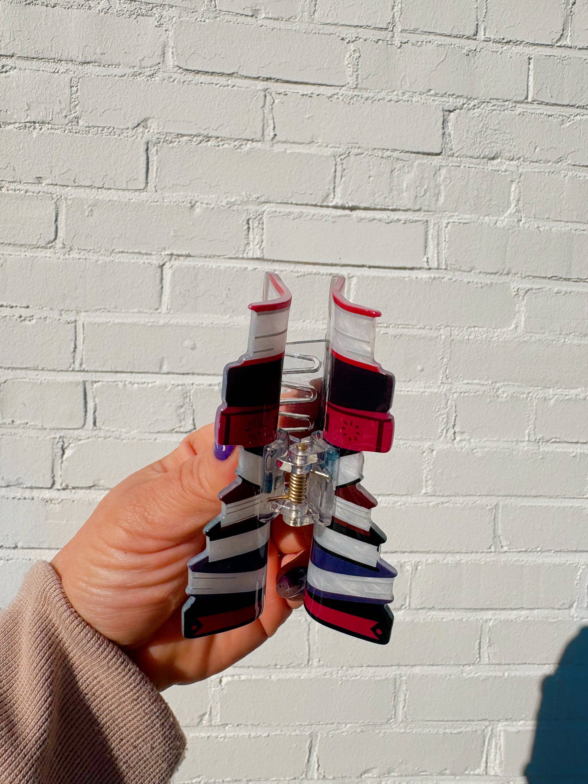 Book lovers, your next chapter in hair accessories has arrived! The Booked Solid Hair Claw features a playful stack-of-books silhouette with shimmering pearlized details — designed exclusively by NatterDoodle and printed with the NatterDoodle logo on the inside.