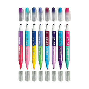 • Set includes 8 double sided layering markers • Each marker has a chisel tip for the base layer and a point tip for the top layer • 6” x 4” • Suitable for ages 6 and up