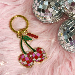 Our Disco Cherries Enamel Keychain adds a fun touch of sparkle to your keys for disco girlies that are out of this world !!