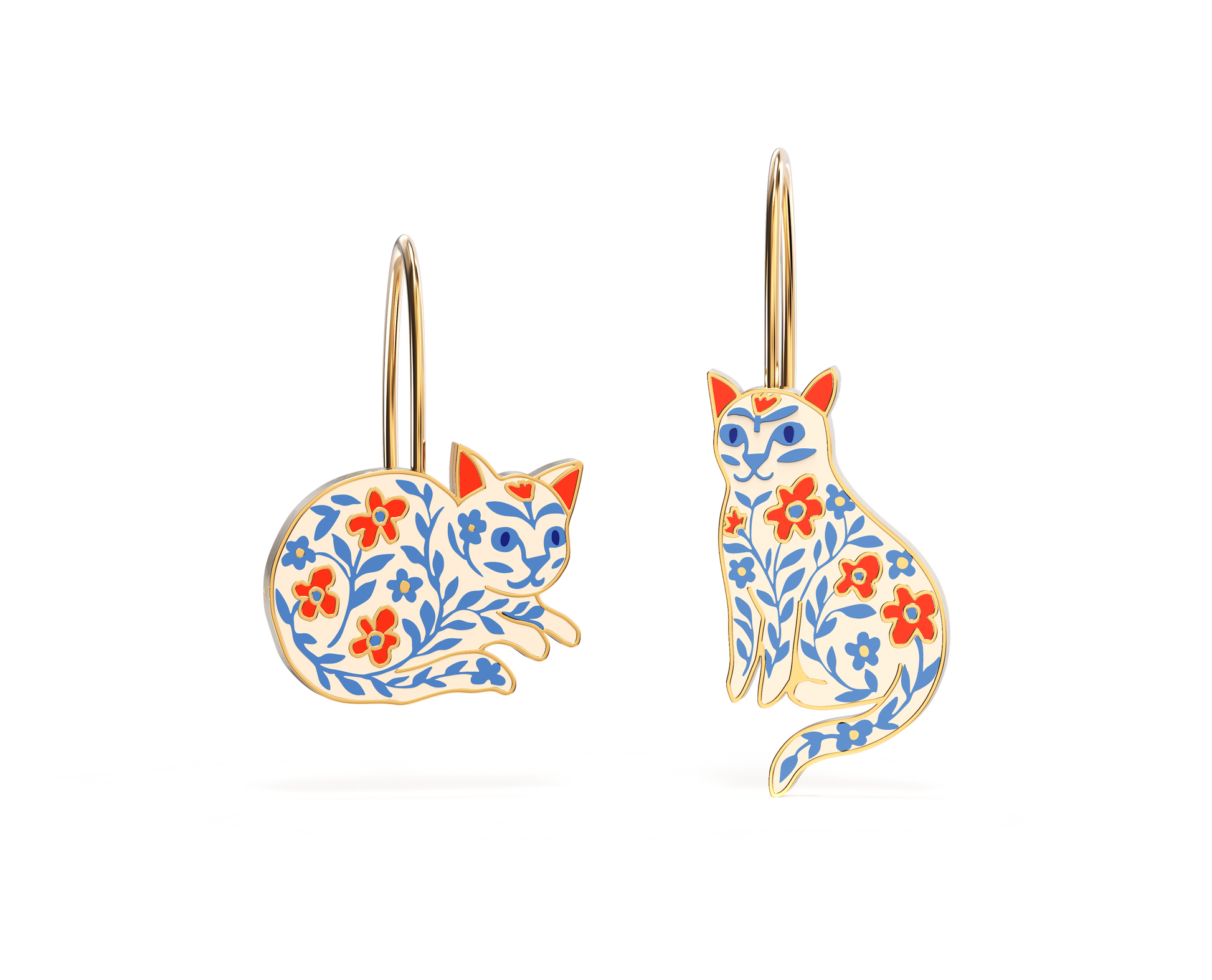 For cat lovers, color lovers, and anyone who’s not afraid of a little flair. This folk art–inspired pair is bright, bold, and easy to wear.