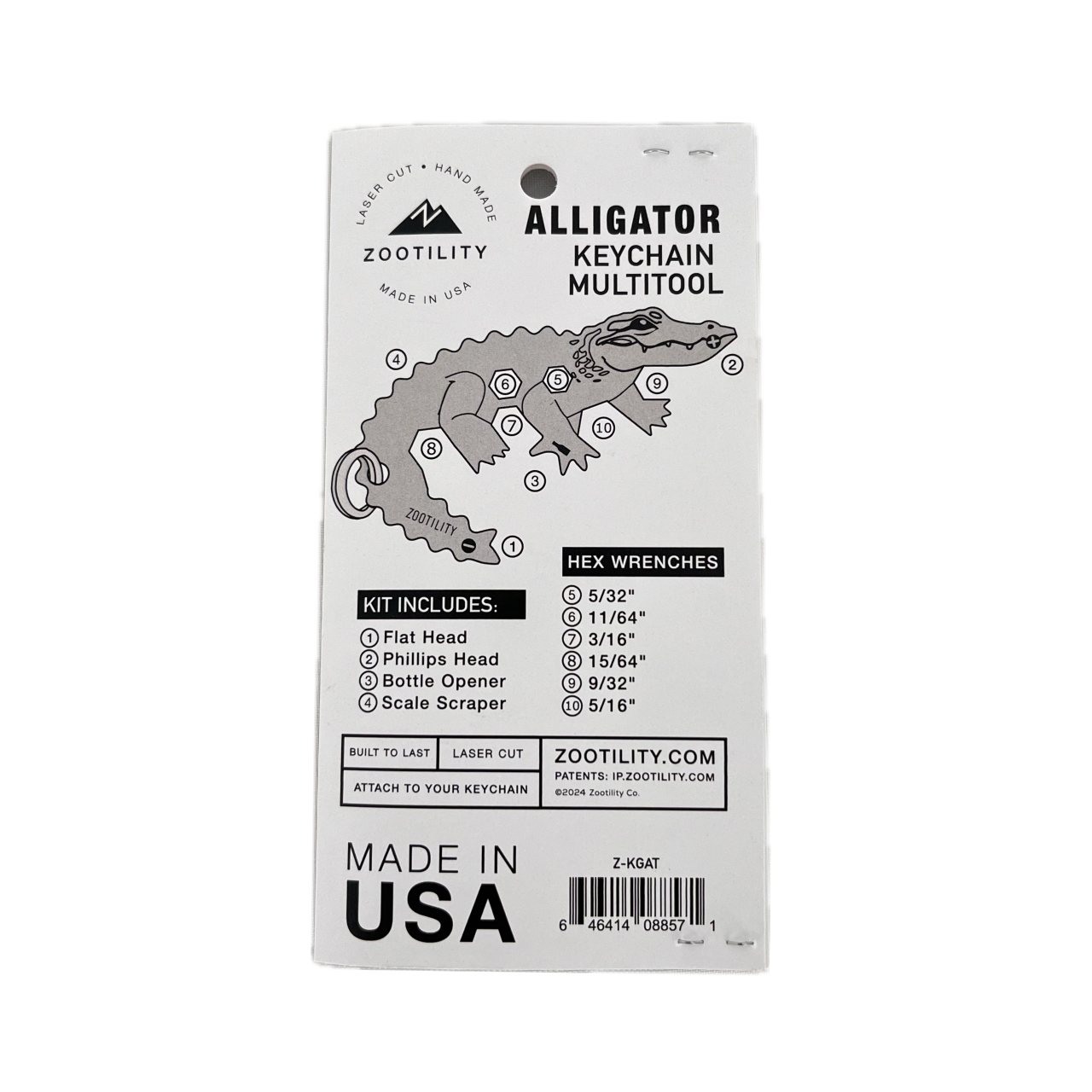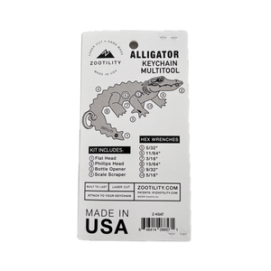 With the Zootility Gator-Done, you're not just carrying a multi-tool; you're carrying a compact toolbox right on your keyring. * 9 x Hex wrenches * 4 x Hex keys * Phillips Screwdriver * Bottle Opener The Gator-Done features an impressive array of nine hex wrenches in varying sizes. Adding to its wide-ranging functionality, the Gator-Done also includes five distinct screwdrivers.
