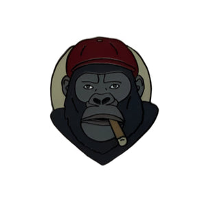 The Gorilla Scally Cap pin is hard enamel on dyed black metal.