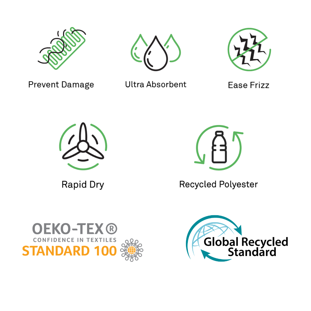 Bad Hair Days begone. This fun and fashionable hair towel wraps up your hair to dry faster, smoother and have less damage. It is the perfect size for longer hair as well.
