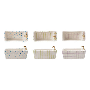 Bring a splash of whimsy to your table with this Hand-Painted Stoneware Bathtub Shaped Dish. Perfect for serving snacks, soaps, or tiny treasures, its charming design adds playful fun to any setting. Crafted from durable stoneware and detailed with hand-painted accents, it’s as practical as it is delightful. Turn everyday moments into a bubbly experience!
