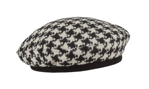 Houndstooth wool beret with an MF pin. Original details and assured feminine touch for the city fashion collection! Warm, whimsical, and always trendy, to enjoy the pleasures of winter.