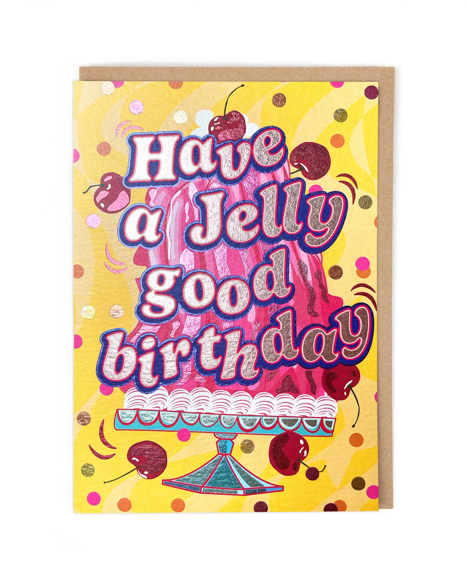 “Have a jelly good birthday” card from our Hot Foils collection. This striking range features colourful illustrations and bold, sassy captions, with sparkling foiled details. Made in collaboration with South London based artist Hot Foils.