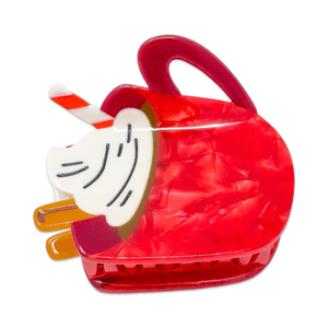 Our Midi Hot Cocoa Hair Claw is a treat for your hair! At 2.5" x 2.25", this acetate claw is handmade and painted with whipped cream swirls, a candy cane, and cinnamon stick details. A sweet holiday hair accessory that’s strong enough for everyday wear and cozy enough for hot cocoa season.