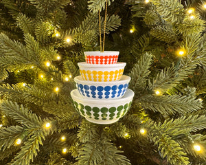 ✨ Why You’ll Love It • Miniature Pyrex-inspired mixing bowl stack design • Evokes memories of holiday baking and family gatherings • Perfect for collectors, vintage kitchen lovers, or unique holiday gifts •