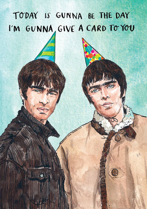 Celebrate in Britpop style with our Oasis birthday card from the Famous Faces range Featuring a punny birthday message and a charming hand-drawn illustration of the iconic Gallagher brothers, this card is perfect for music lovers and 90s nostalgia fans alike.