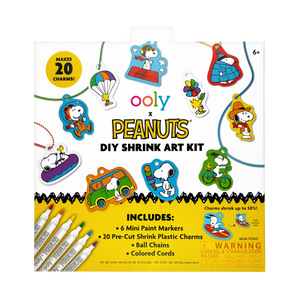 Make your own Snoopy charm-making kit! The OOLY x Peanuts DIY Shrink Art Kit lets you create 20 colorful Snoopy charms that shrink down to accessory size when baked. Complete with ball chains, colored cords, and mini paint markers, this craft kit is perfect for kids and Snoopy fans alike.