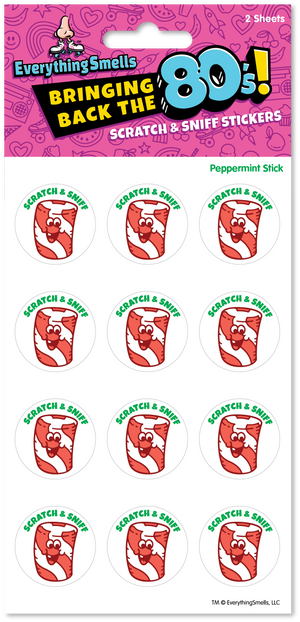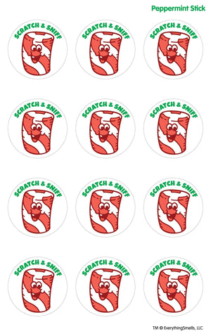 Peppermint Stick Scratch & Sniff Stickers * 2 sheets per package * 12 stickers per sheet/24 per pack * Matte stickers * Stickers are 1.125" round * Micro-encapsulated scratch & sniff * Phthalate-free fragrance!