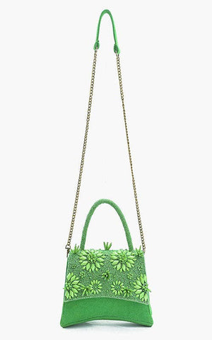 Embellished Chic Handbag * Magnetic Button closure * Long Detachable Chain Strap * Two Compartments along with One Zipper Pocket * Made in Lurex * Size : 9.5" X 7" X 4.5" Bloom in beauty with the Sage Grove Wildflower Top Handle Bag