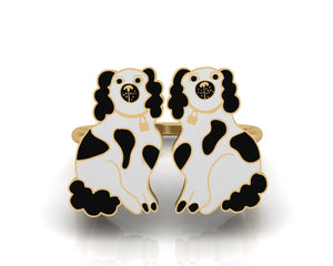 Our Staffordshire Dogs adjustable ring celebrates the ubiquitous matching pair of pottery spaniel dogs, who have stood guard on mantelpieces since the 19th century.