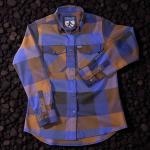 Buffalo plaid just got wrecked and rebuilt the Hales Legendary Flannels way. The Men’s Bad Moon Flannel isn’t your grandpa’s two-tone check — we dropped a four-color scheme of cobalt blue, brown, and black that hits like a full moon over the mountains. Picture it: moonlight flashing, a silhouette howling, engines firing, tires smoking. That’s the vibe stitched into this shirt. Throw it on when it’s time to hit the throttle and raise hell. Limited Edition — once this moon sets, it’s gone forever.
