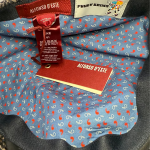 A nod to British pub lore with Italian refinement, The Blue Herring Pub Cap distills heritage charm into a modern, quietly luxurious silhouette. Crafted in Italy by Alfonso d’Este for FunkyBrims, the cap features a distinguished herringbone weave enriched with subtle blue flecks—small sparks of color woven into a field of earthy stone and charcoal tones. It is finished with a genuine blue leather brim in a classic 6 panel pub cap shape.
