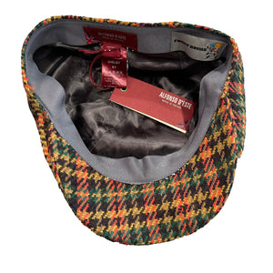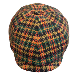 The pattern hits with an Irish-leaning mix of earthy greens, ember reds, and golden tones — a modern spin on classic houndstooth energy. It’s the kind of cap that feels at home crossing the Ha’penny Bridge or stepping out of a downtown whiskey bar.