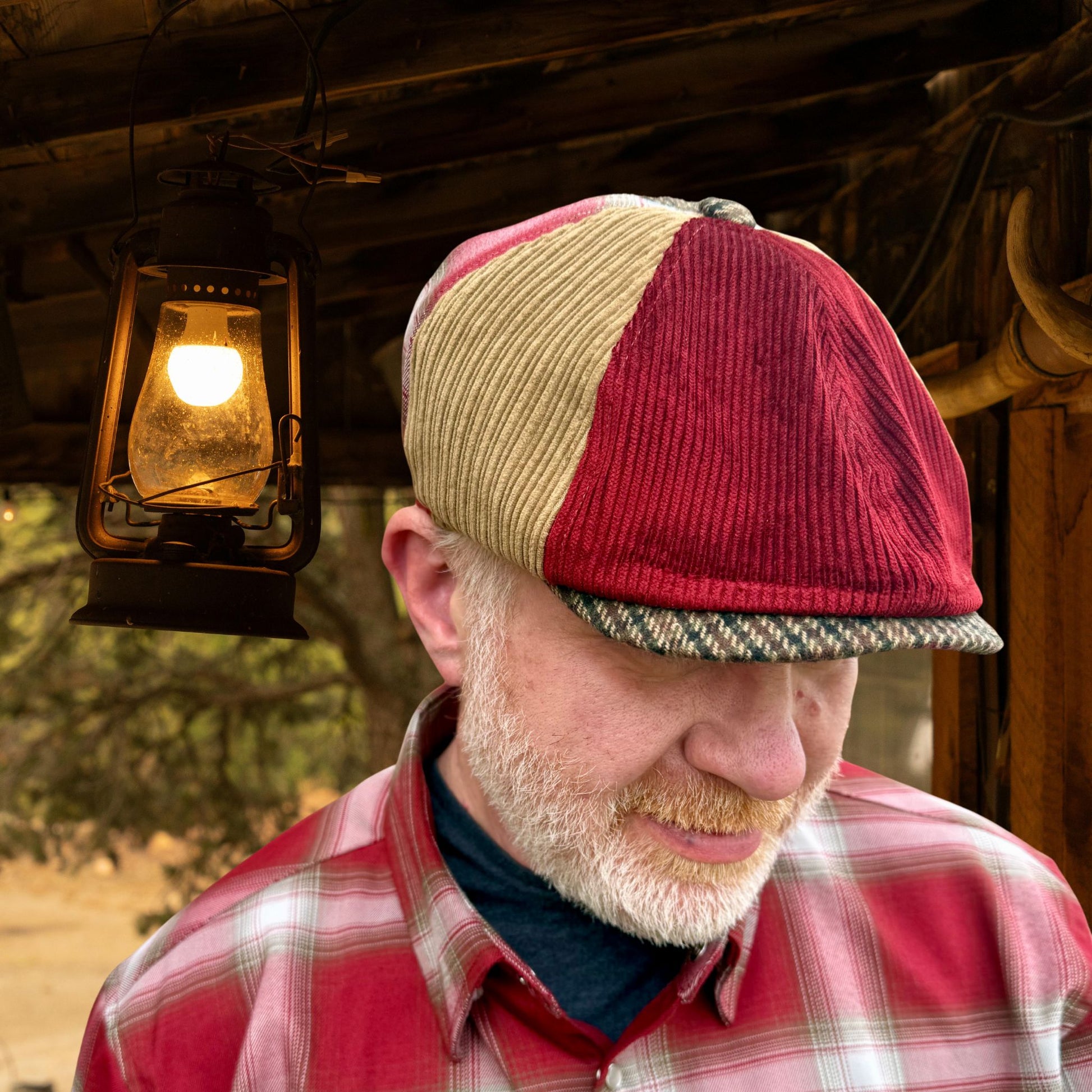 A little outlaw. A little refined. A whole lot of Western swagger. The Huckleberry Patchwork Newsboy stitches together a bold mix of textures — cardinal and tan corduroy, rich plaid, and rugged brown tweed — creating a cap with more character than a saloon full of gunslingers.