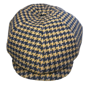 Crafted in Italy by Alfonso d’Este for FunkyBrims, this striking newsboy features a blue-and-gold houndstooth weave that catches the light and turns heads. The 100% premium wool body offers rich texture and natural warmth, while a smooth satin liner adds an indulgent touch of comfort and polish.