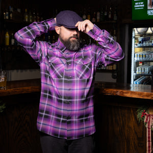 The Live Wire Purple Tweed Flat Cap is a premium collaboration between Funky Brims and Hales Speed Shop, blending heritage craftsmanship with unapologetic attitude. Built from premium English tweed, this cap delivers timeless style on top — with a rebellious edge hidden underneath.