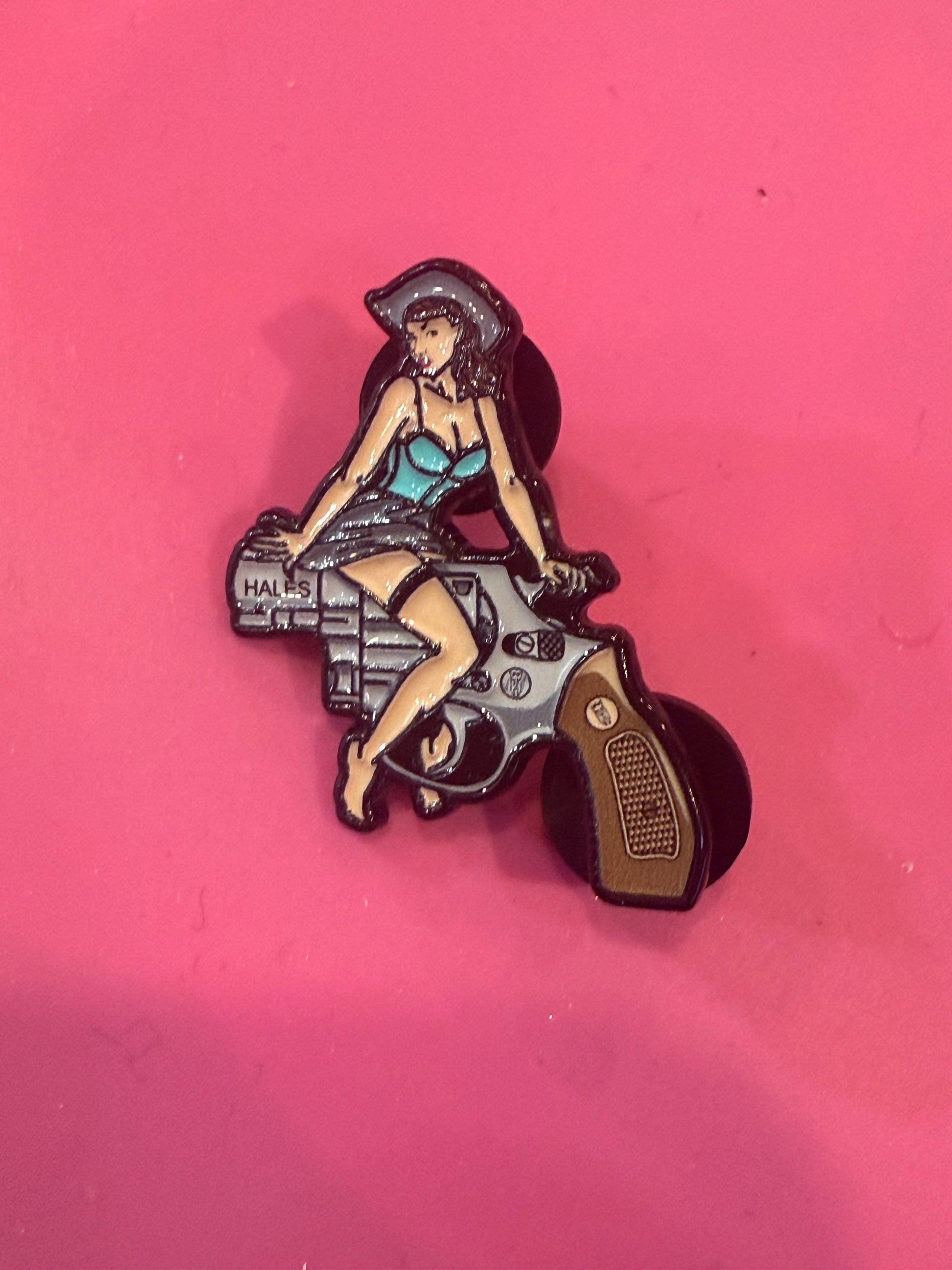 The Saturday Night Special Cap Pin from the Hales Speed Shop x FunkyBrims collab is small in size but big on attitude. Featuring the bold cowgirl pinup artwork from the Saturday Night Special graphic, this pin is the perfect accessory to throw extra punch on your favorite cap, jacket, or bag. Limited-edition collab detail meets everyday wearability — the kind of piece that makes your fit feel complete. Whether you’re rocking the matching cap or adding flair to your own style, this pin brings that Saturday night energy wherever it lands.