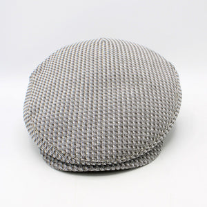 Step into classic summer style with the "Summer Gatsby" by Hologramme Paris. Made in Italy from 100% breathable Italian cotton, this flat cap features a refined medium gray Art Deco check pattern on a crisp white background.