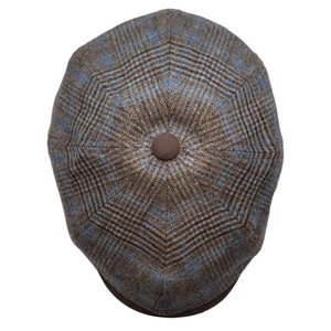 The Windsor Check Newsboy Cap by FunkyBrims is a study in craftsmanship and quiet sophistication. Woven in Italy from 100% pure wool, its soft brown-and-blue check pattern exudes understated elegance and versatility. The breathable cotton lining ensures lasting comfort, while the classic eight-panel silhouette and covered button crown pay homage to its heritage tailoring.