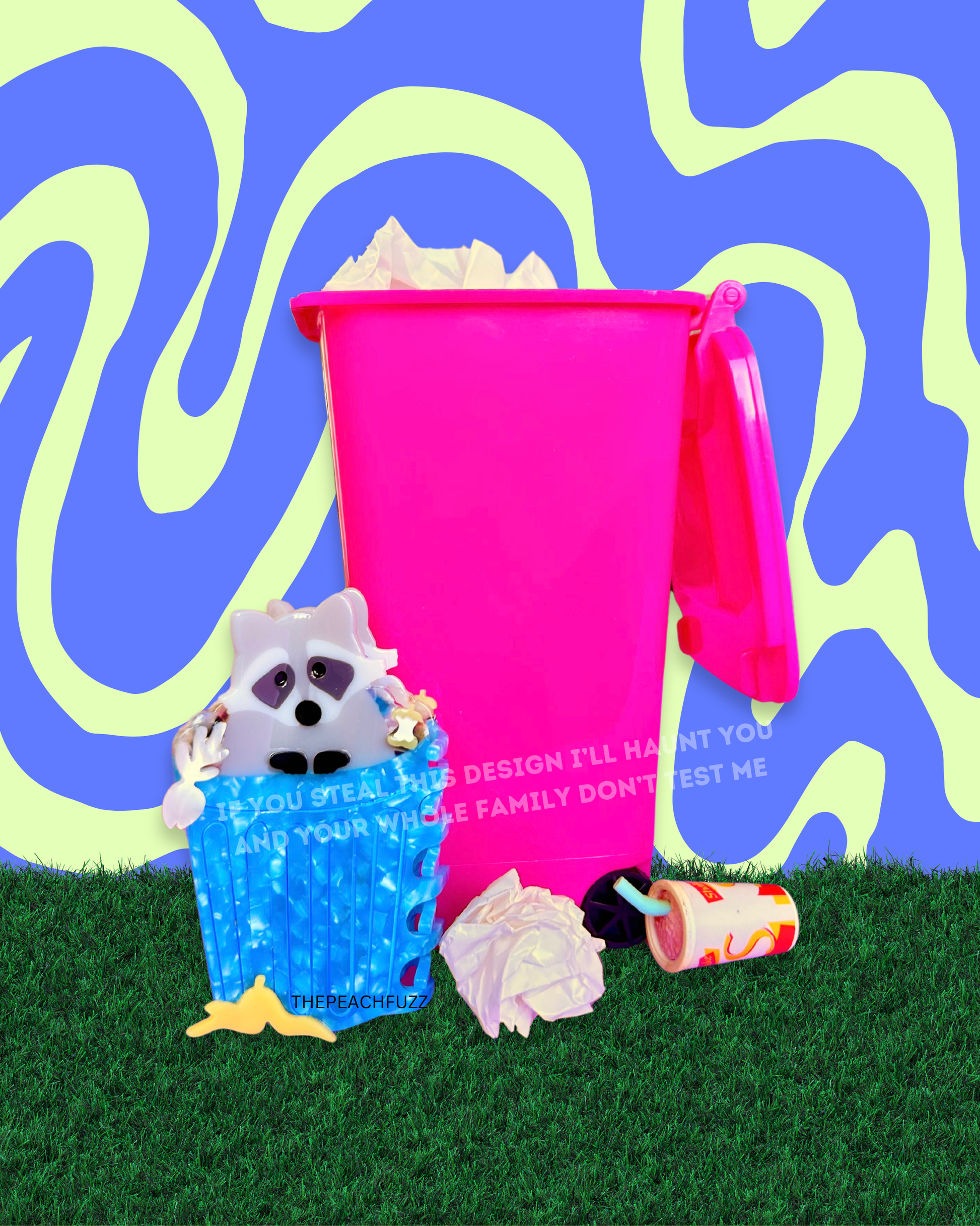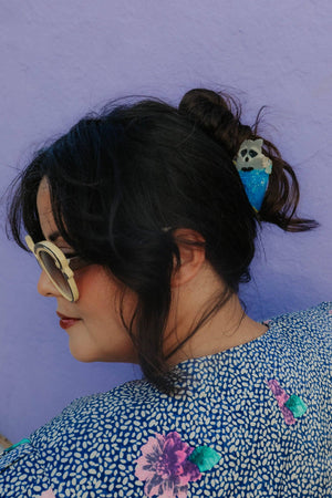 I'M THE TRASH MAN! And every trash man deserves their own trash panda. This raccoon inspired hair claw comes complete with a little guy in his cozy trash can and all his favorite scraps. Made of eco-friendly cellulose acetate (made from plants!) Measures 3.25 inches long. Designed by me in San Francisco, CA.