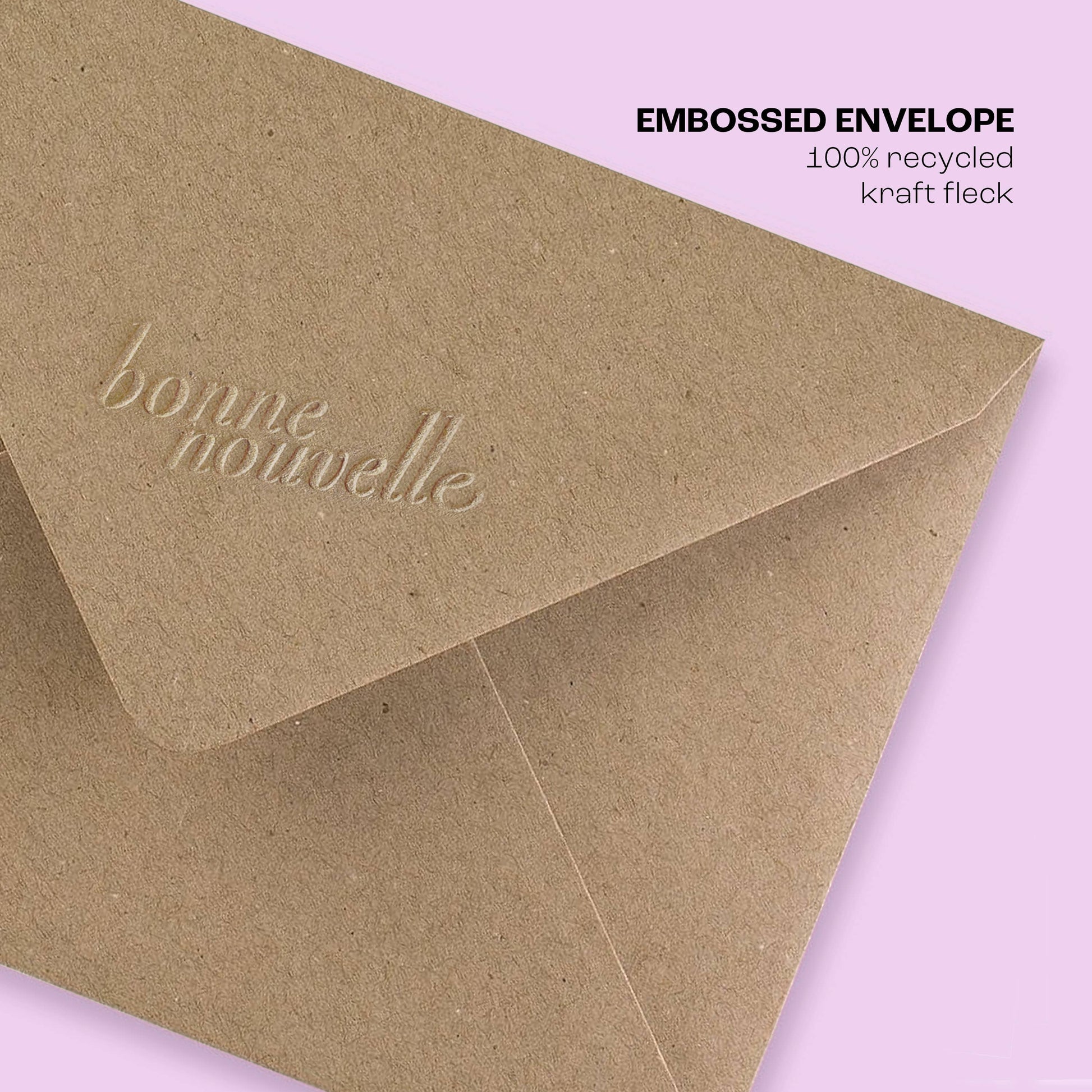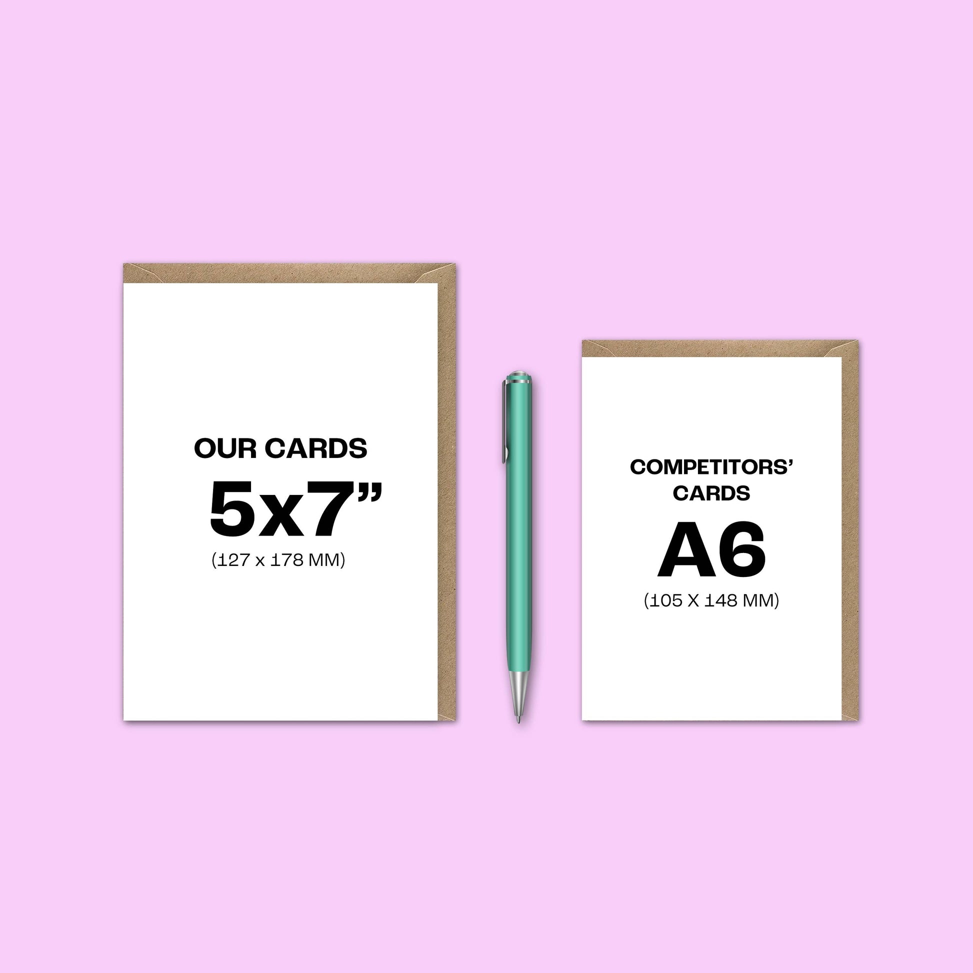 • Blank inside • 5x7" (127 x 178 mm) • Branded, embossed Kraft envelope • Professionally printed with high quality inks on thick 300 gsm card •