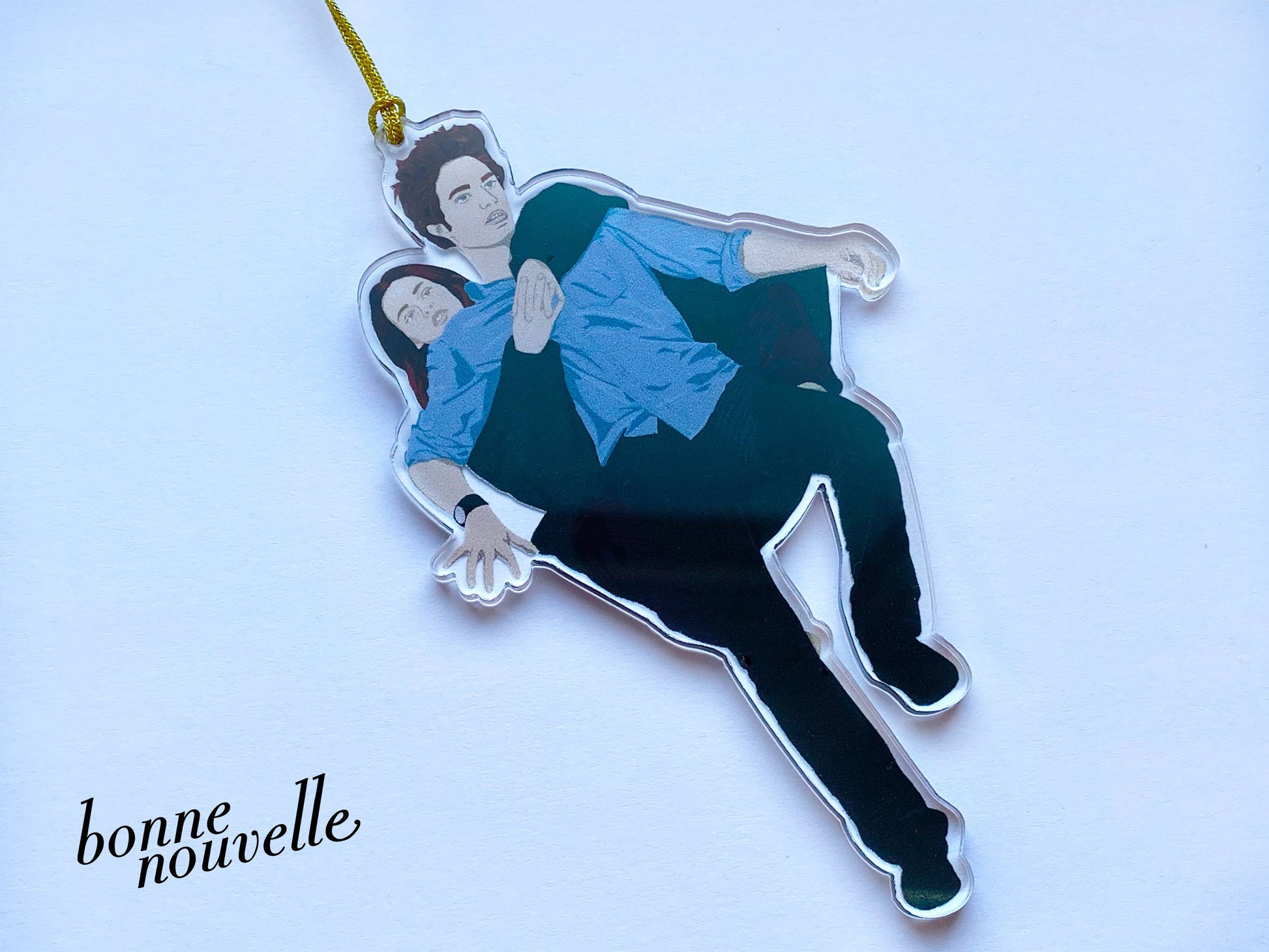 The perfect ornament for any Twilight fan's Christmas tree. • High quality clear acrylic • 3mm thick, 100 mm high • Gold cord for hanging on your Christmas tree • Double sided print • Designed & manufactured in Britain.
