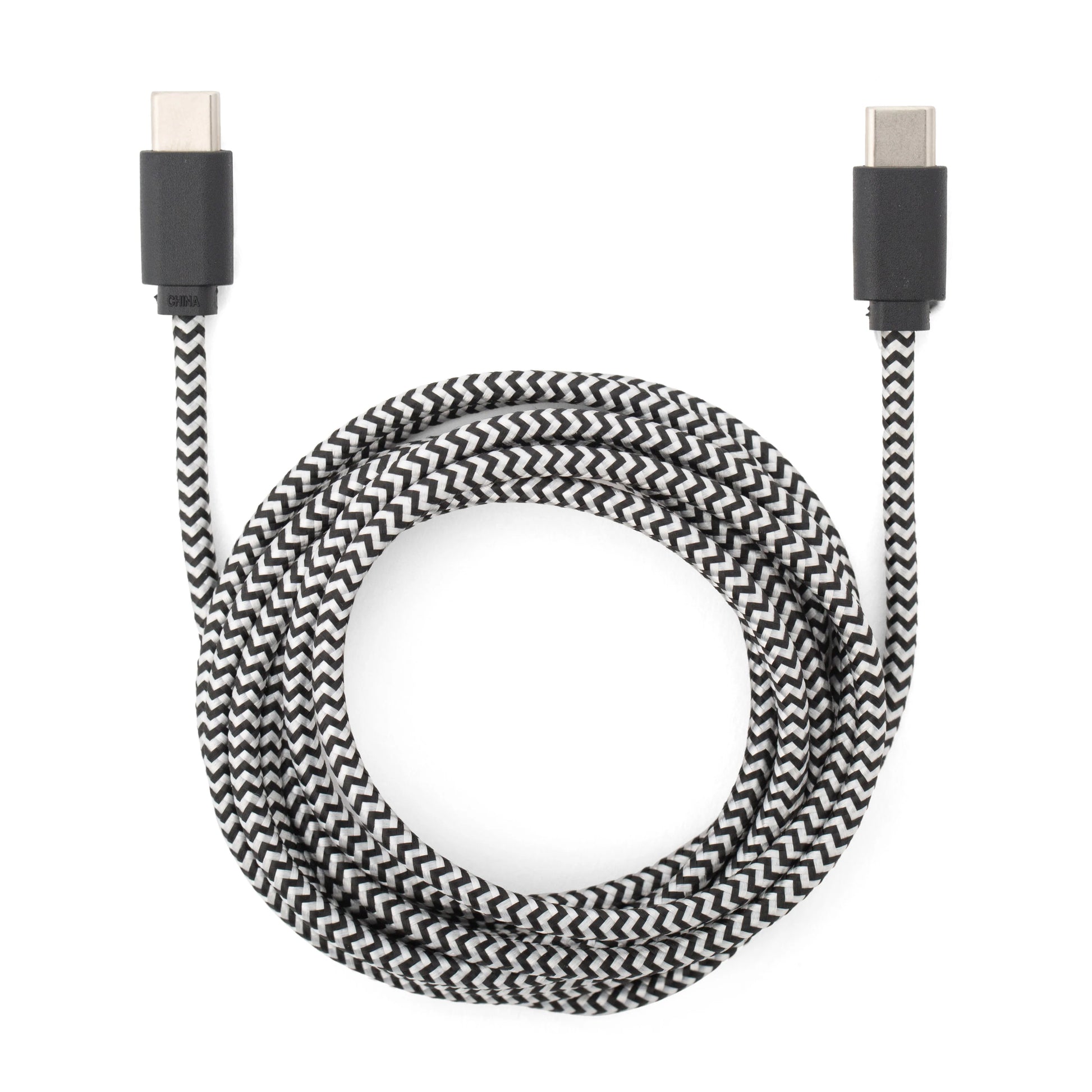 Cotton braided Type C to Type C charging cord helps prevent tangles. 2M/6.5ft length for versatile use.